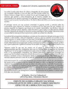 Ante este escenario de complejidad, el mensaje que enviamos desde el ELN a las y los jóvenes de los barrios en las ciudades es que no vendan tan barata su vida y su dignidad. Los sueños de construir una sociedad justa en la que los niños y las niñas puedan desarrollar los proyectos y sueños que se merecen se construye con la conciencia y organización colectivas, en comunidad y en defensa de los derechos del pueblo. A las comunidades de los barrios populares de la ciudad les invitamos a organizarse y a luchar juntas para transformar la sociedad y a denunciar a los falsos revolucionarios que deslegitiman la historia de resistencia de los pueblos. Cuentan con el ELN para este propósito.